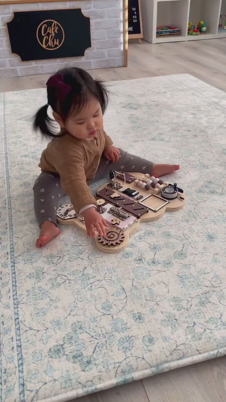 I loved this rug so much I bought a second one the day it arrived. It’s soft to touch, cloud-like underfoot, the print is gorgeous and makes playtime on hard floors enjoyable. My baby even falls asleep on it! It’s so easy to clean, which is a must for kids/babies. If you want a play mat that doesn’t “look” like a play mat this is the one. Im keeping my fingers crossed for more designs so I can purchase for the bedrooms too.